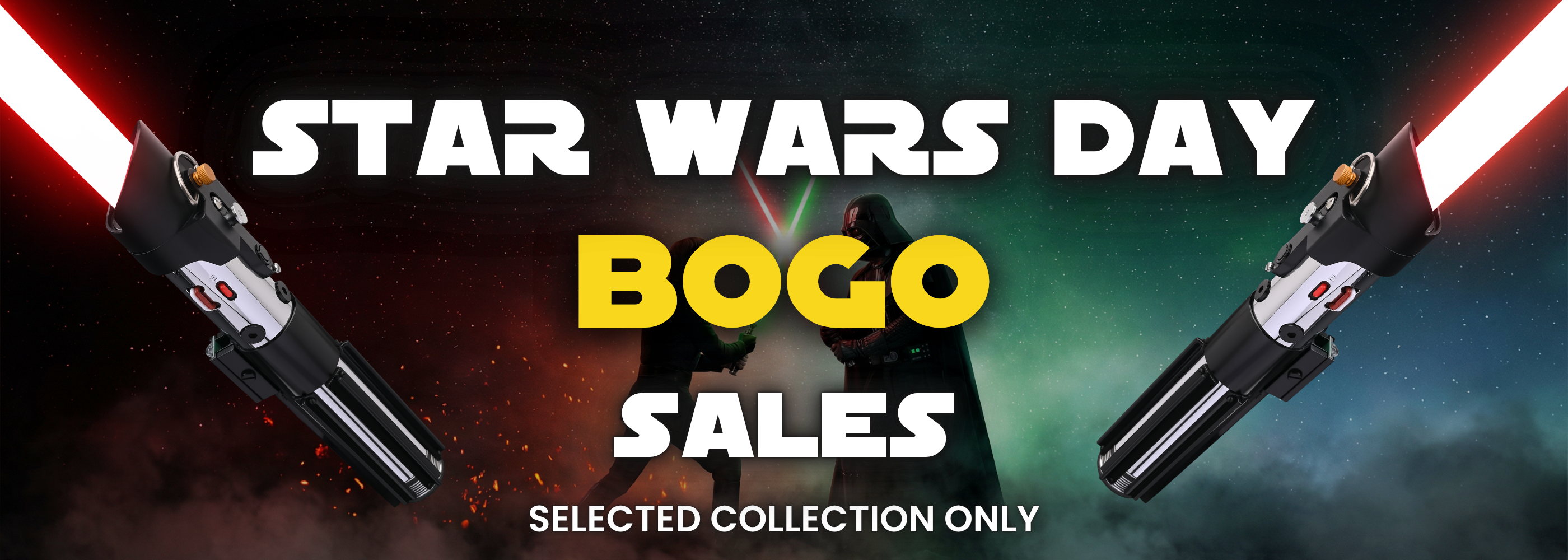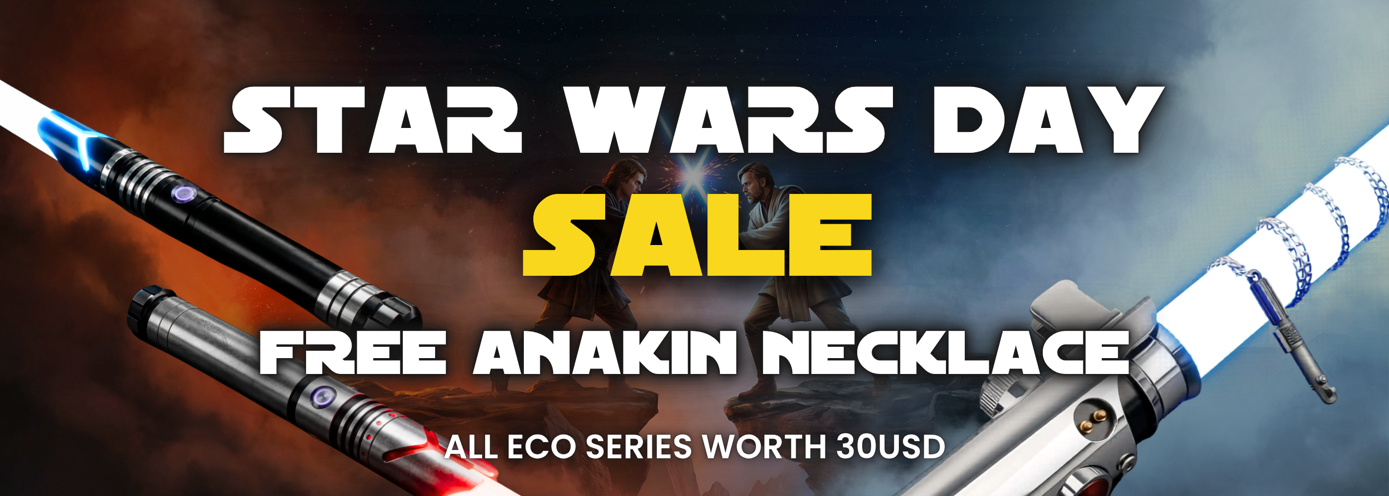 The May the 4th Lightsaber Sale is a limited-time event. Many promotions are available only during the Star Wars Day celebration or while promotional stock lasts.
