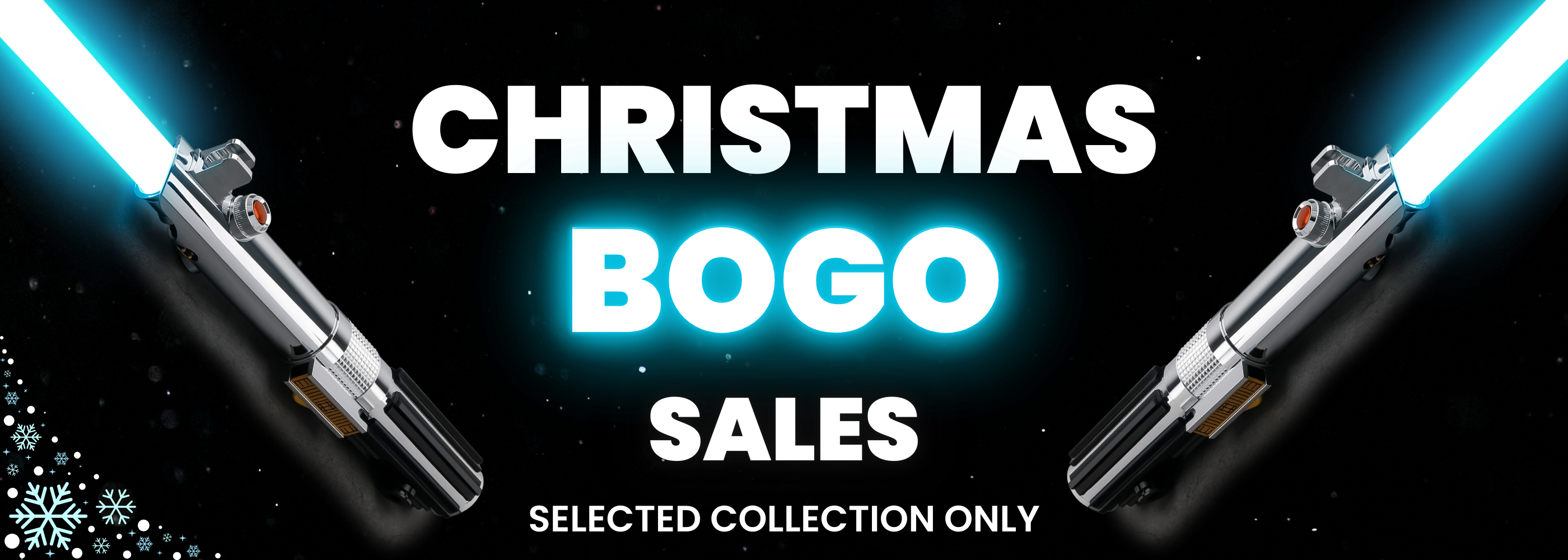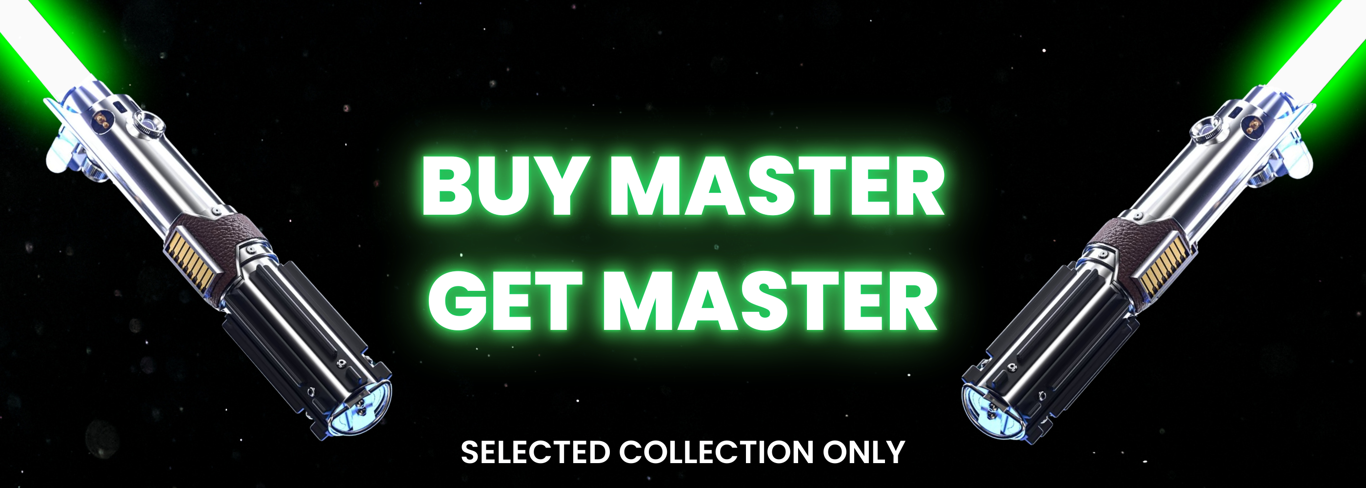 Our holiday offers include Buy 1 Get 2 Free on selected sabers, Buy 1 Get 1 Free, and up to 50% OFF premium Neopixel & Master Series models. Free gifts and mystery sabers are available while stock lasts.