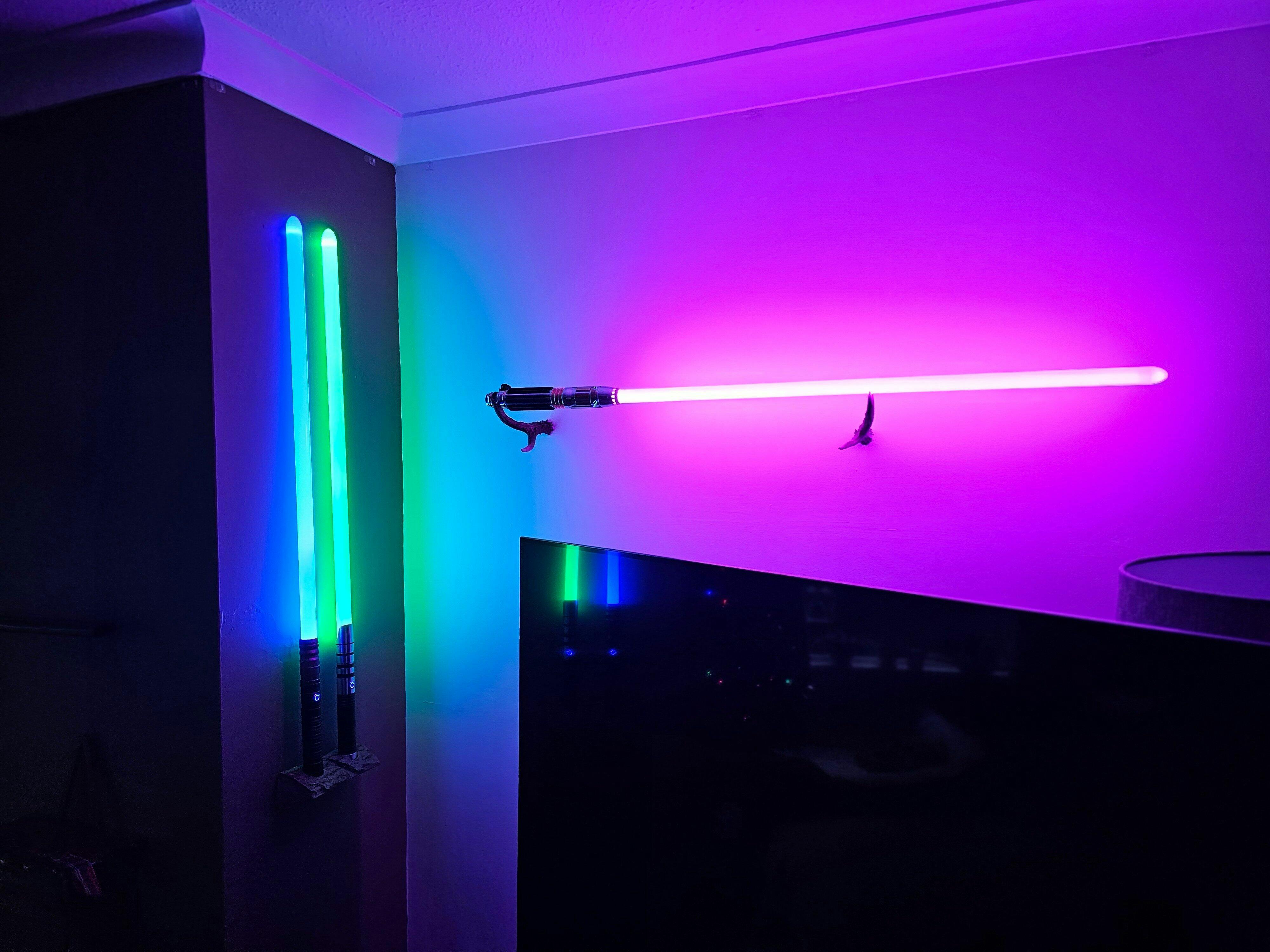 Neopixel version – Easy change 12 main colors (Red, Green, Blue, Purple, Orange, Yellow, Pink, and in-between shades) with a super-bright 50W blade for cinematic, viral-ready visuals.
