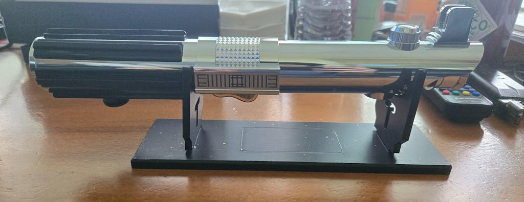 エピソード3のアナキン・スカイウォーカーにインスパイアされたアナキンEP3(クリスタル)ライトセーバーの象徴的なパワーを体感してください。回転するクリスタルを備えたこのユニークなライトセーバーは、コレクションに躍動感を与えます。パフォーマンスとディスプレイのために作られたこのライトセーバーは、比類のない本物らしさとディテールを備え、ファンにもコレクターにも最適です。